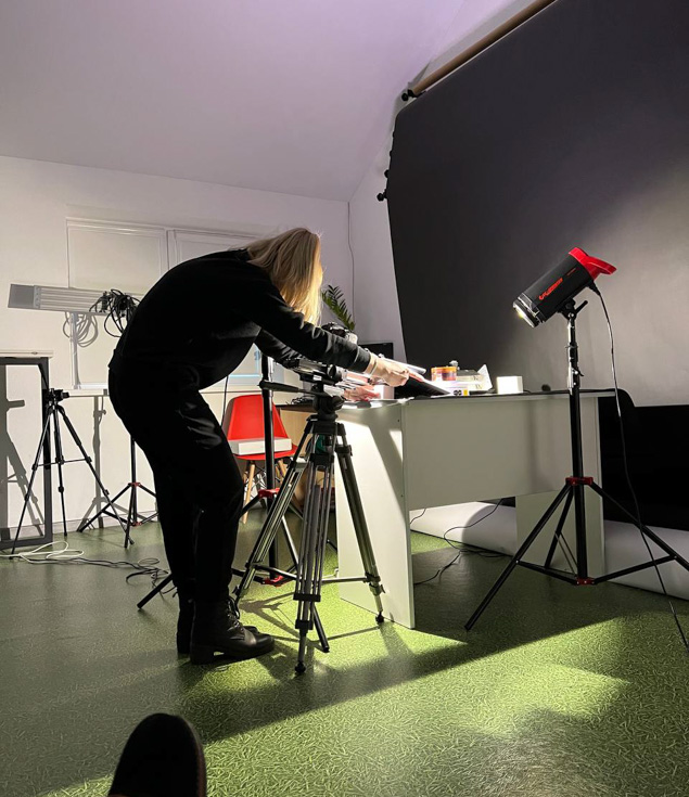 На нашей студии имеется большой диодный экран. Множество приборов света Aputure с софтами и флагами. Поворотные тарелки, крепления, реквизит и всё необходимое для предметной съемки