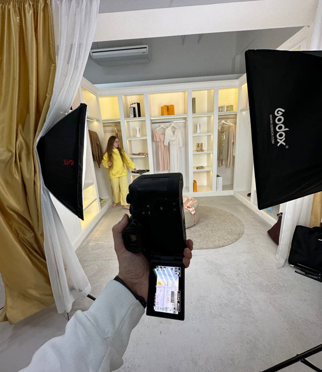 Используем множество приборов видеосвета, фоны, крепления. Создаем правильную картинку товара -